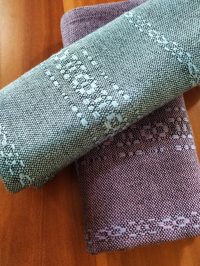 Kézzel szőtt pamut konyhai törlőkendő szett. 1 kék és 1 lila színű. Saját színével finoman mintázva Méretük: 40 cm x 75 cm Alapanyag: 100% pamut